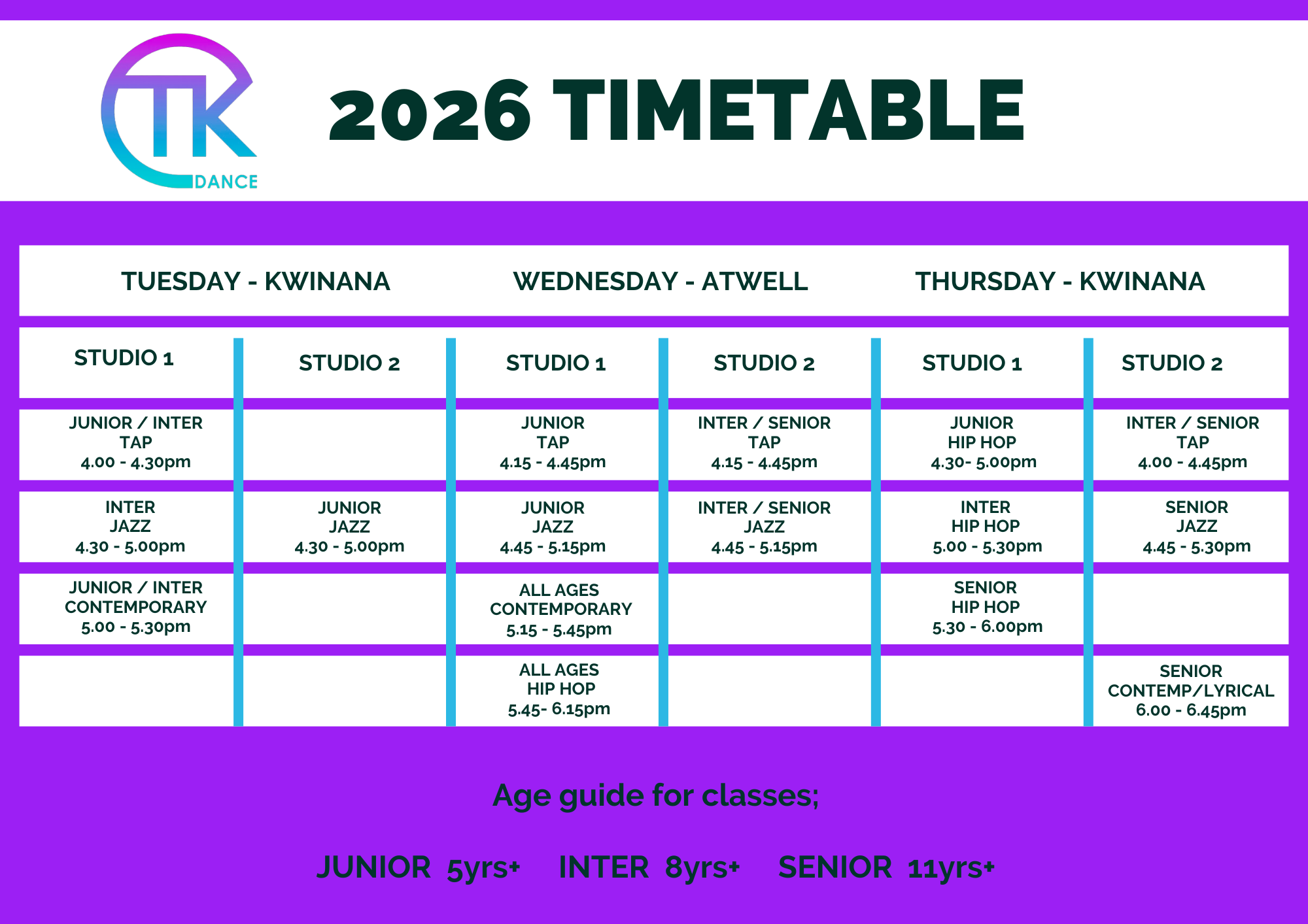 | 45 MIN CLASSES | $150 per Term $20 Casual |